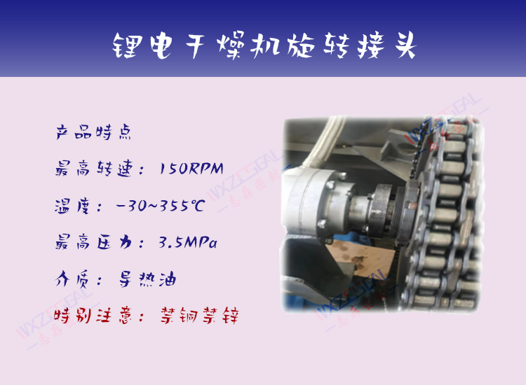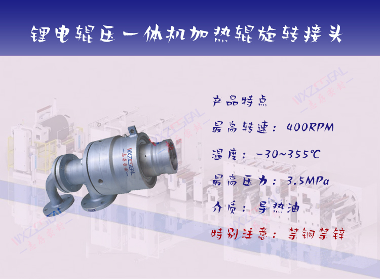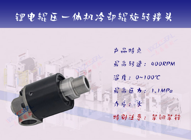 以上是锂电行业设备通常情况下需要用到的旋转接头,还有一些涂布机等设备在特点情况下需要定制旋转接头及滑环,欢迎各位在设备旋转接头应用过程中,遇到问题与我们交流.志存密封将不遗余力与大家一起解决锂电行业旋转接头使用中的常见问题