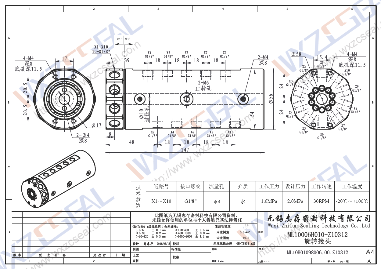 ML10006H010-Z10312多通道旋转接头|中空旋转接头