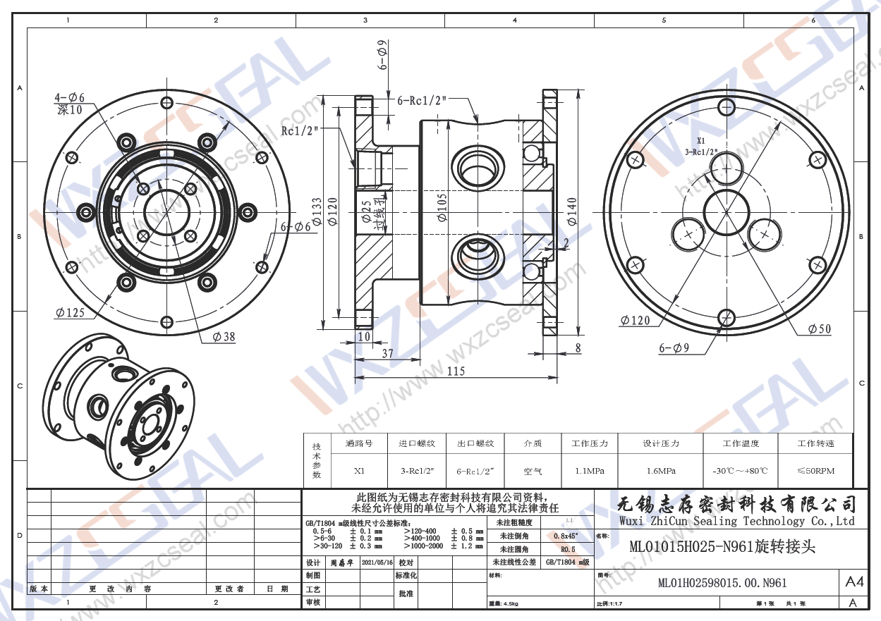 技术参数 通路号 进口螺纹 出口螺纹 介质 工作压力 设计压力 工作温度 工作转速