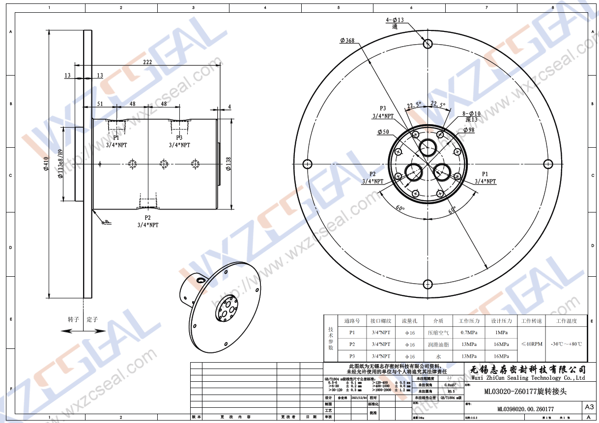ML03020-Z60177多通道旋转接头|高压旋转接头