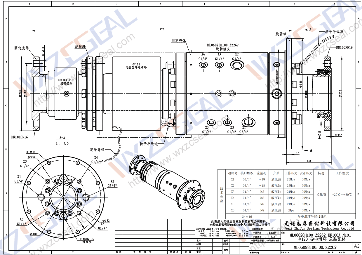 ML06020H100-Z2262+EF100A-N101型消防车专用电液组合滑环