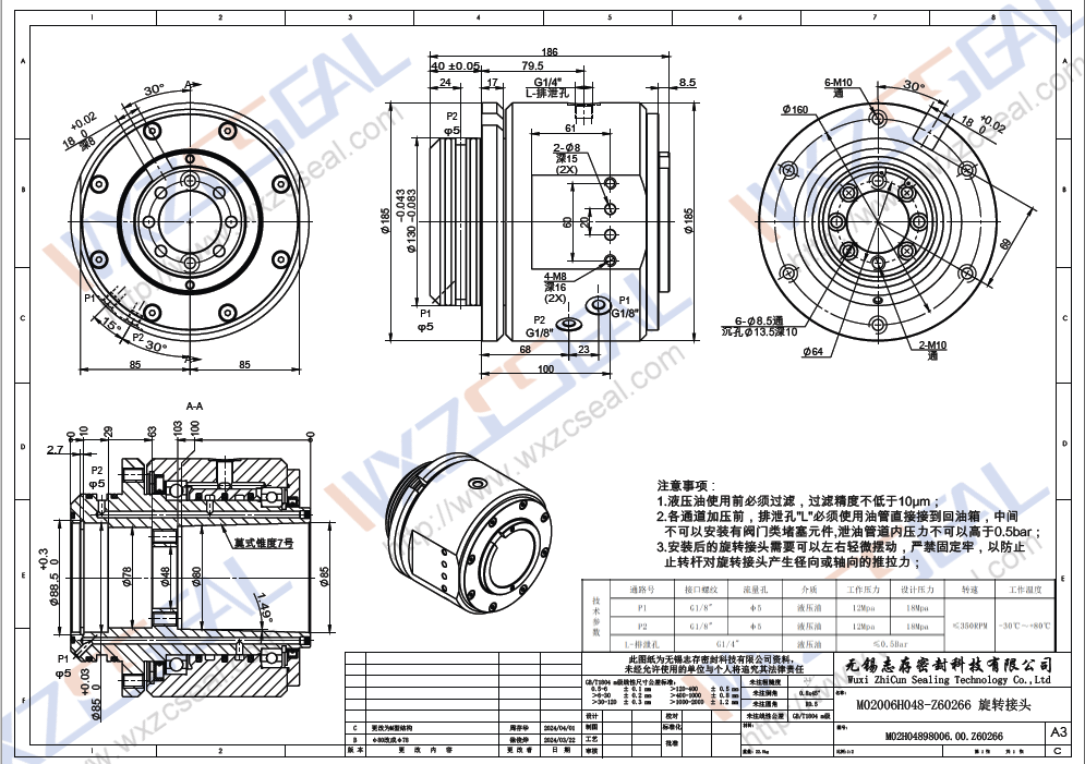 M02006H048-Z60266液压旋转接头|中空旋转接头