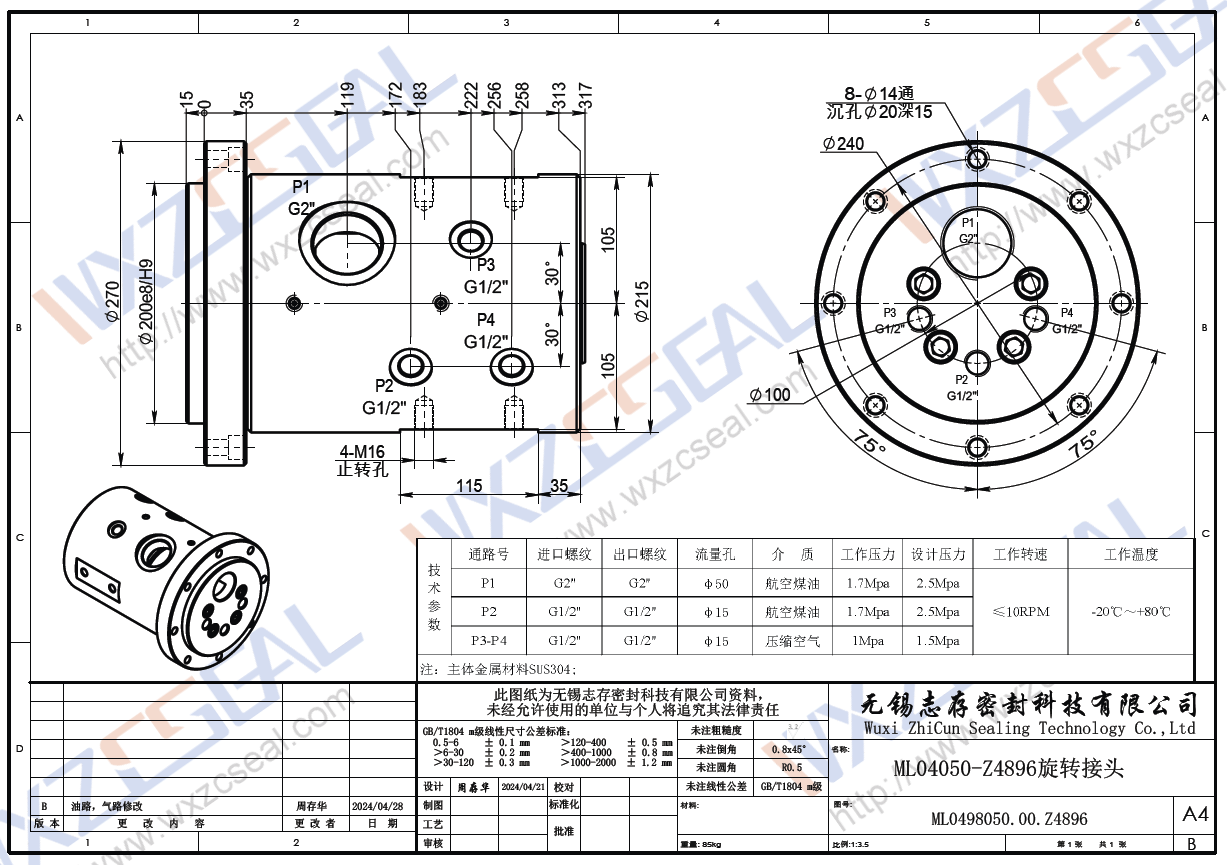 ML04050-Z4896型航空煤油旋转接头定制|多通道旋转接头